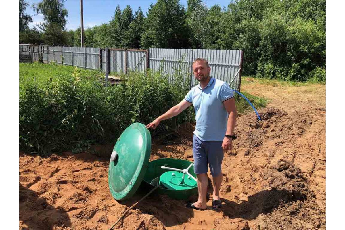 Очищенная вода удаляется в напорном режиме насосом из встроенного колодца (рассчитано на условия, когда невозможен отвод очищенной воды в самотечном режиме).