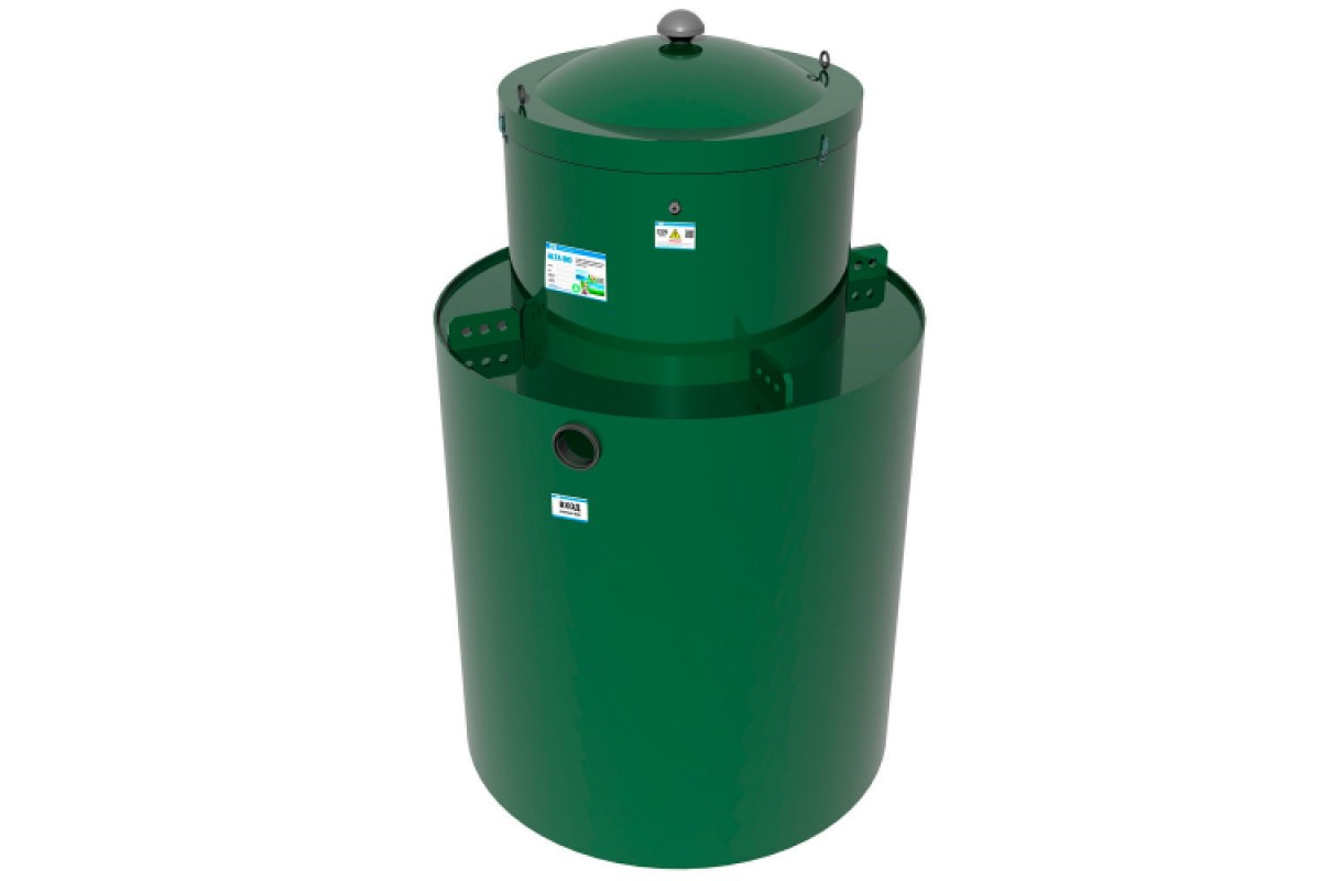 Цилиндрический корпус устанавливается в колодец септик из стандартных бетонных колец.