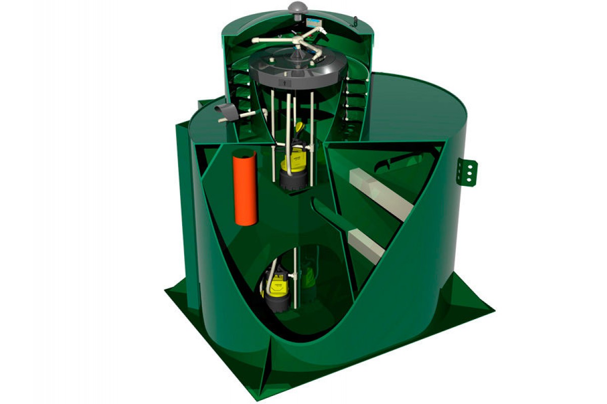 Очищенная вода удаляется в напорном режиме насосом из встроенного колодца (рассчитано на условия, когда невозможен отвод очищенной воды в самотечном режиме).