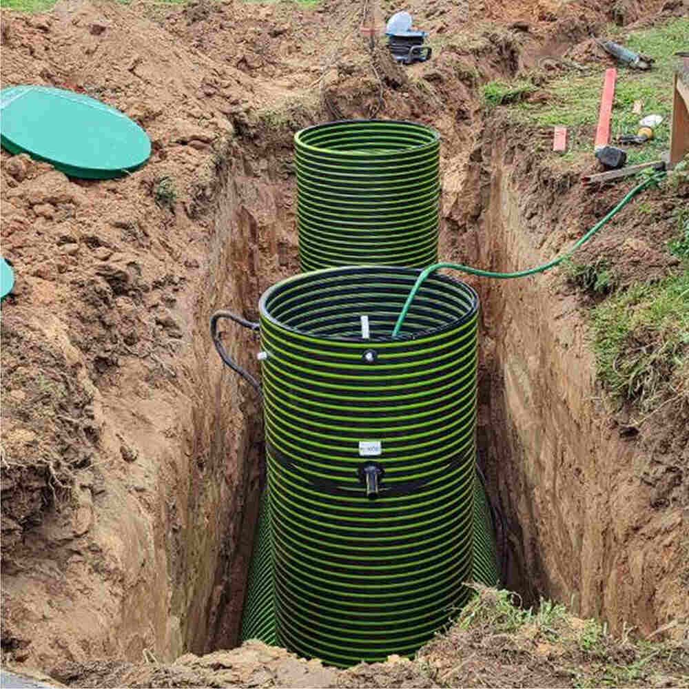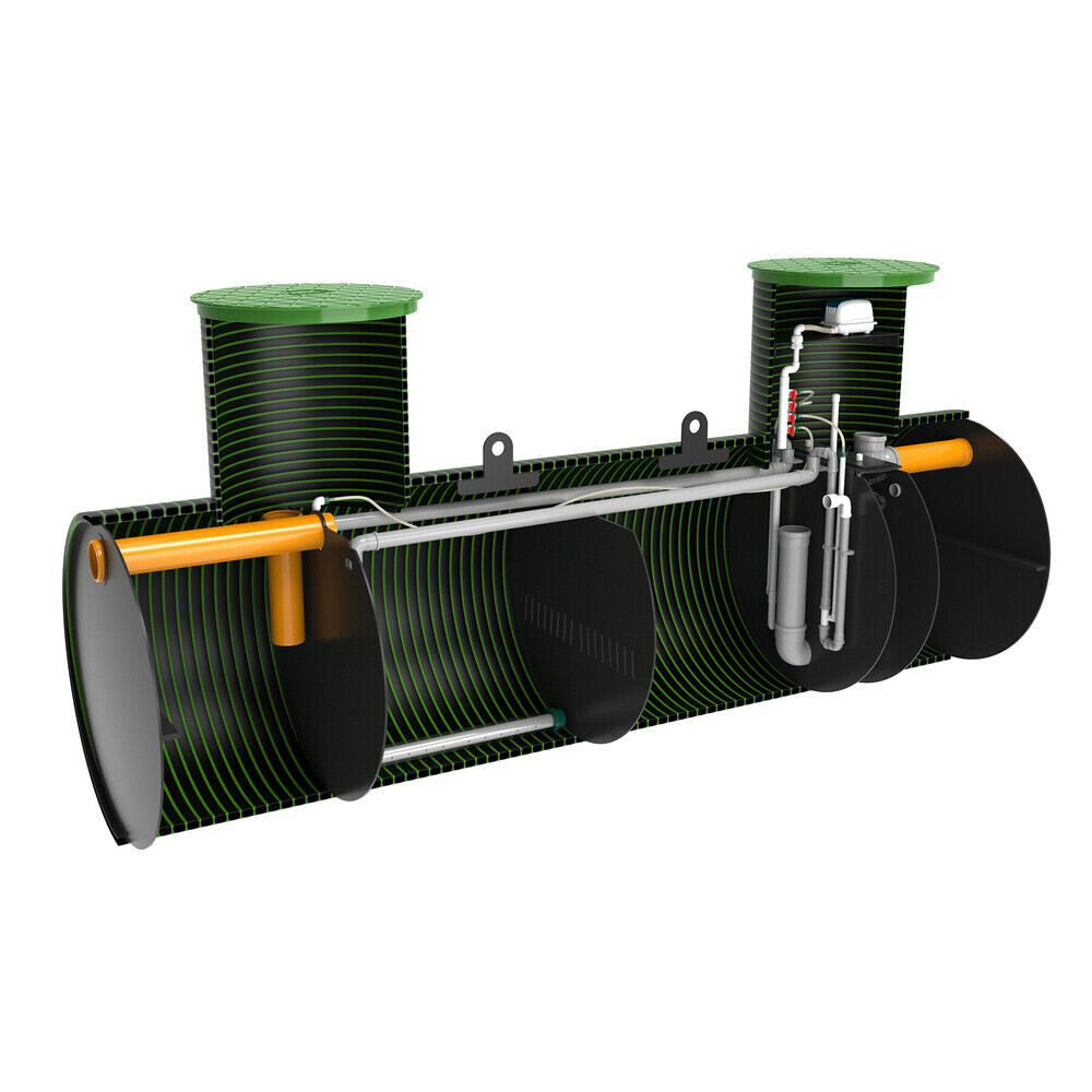 Корпус выполнен из полиэтиленовой спиральновитой трубы, изготовленной по высшим международным стандартам с соответствующими сертификатами качества. Материал корпуса - полиэтилен марки ПЭ100, самый прочный на сегодняшний день из всех ПЭ полимеров. Толщина корпуса составляет 25 мм. Материал станции устойчив к низким и высоким температурам, что позволяет при монтаже станции делать обратную засыпку песком и эксплуатировать в любых климатических условиях. Монтаж становится еще проще и дешевле. Обратная засыпка станции цементно-песчанойесью теперь не нужна!