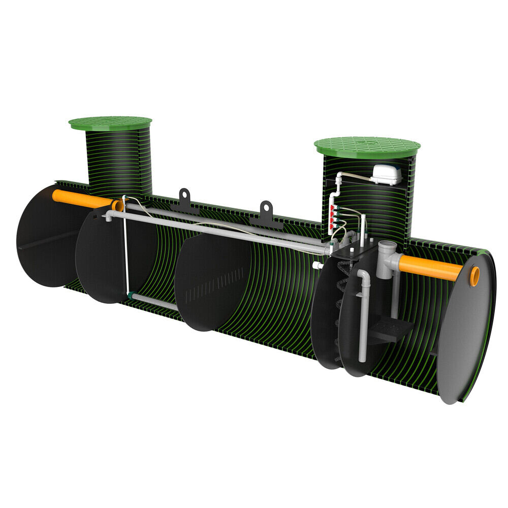 Трех-камерная станция биологической очистки имеет горизонтальное исполнение для простого и незатратного монтажа при высоких УГВ (УГВ - уровень грунтовых вод). За счет горизонтального исполнения станция имеет минимальную монтажную глубину ( всего лишь 1300-1500 мм до дна котлована!) что делает ее лидером среди всех станций биологической очистки на рынке СНГ по удобству и простоте монтажа при высоком уровне грунтовых вод. Не требует якорения! Всплытие исключено!