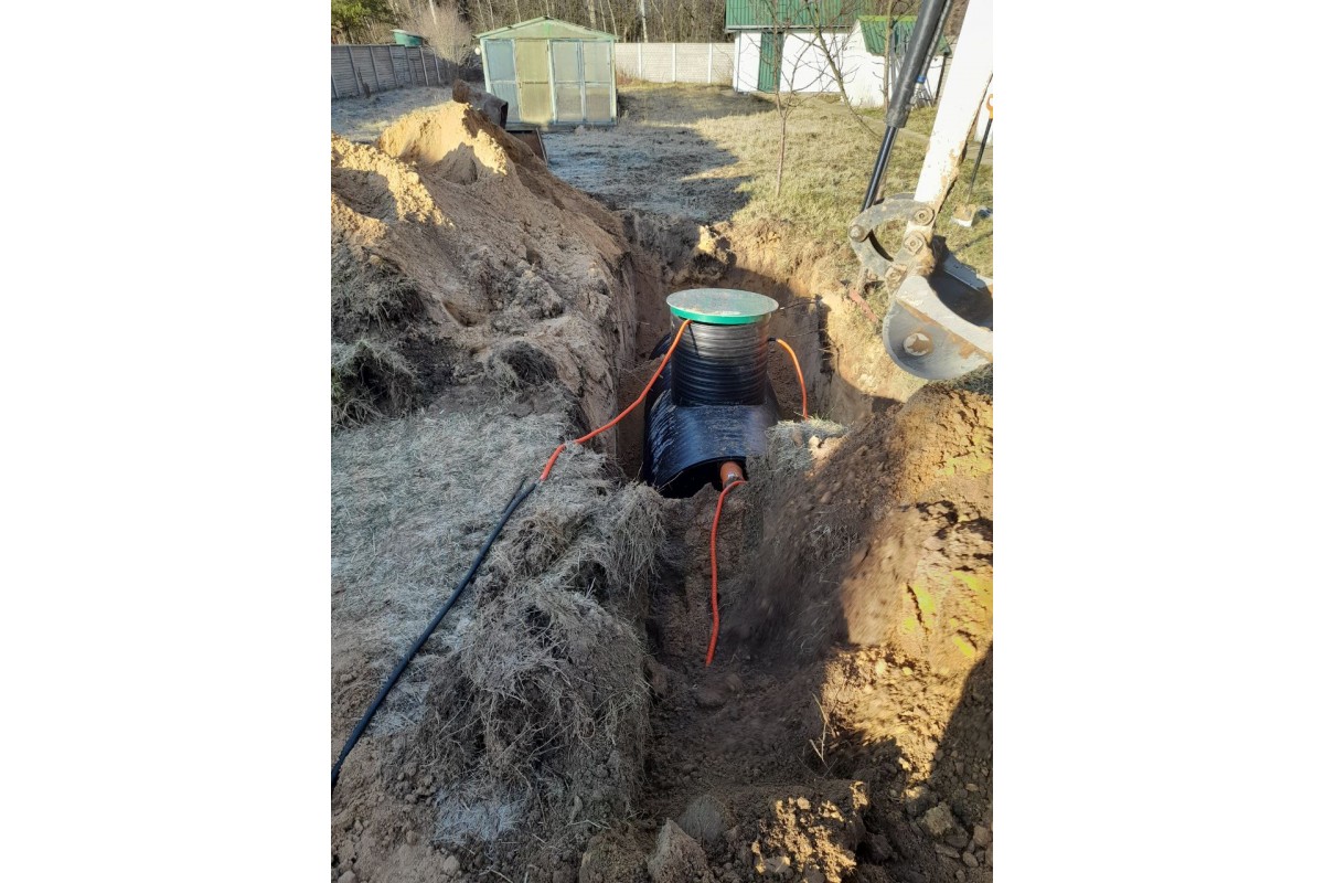 Корпус выполнен из полиэтиленовой спиральновитой трубы, изготовленной по высшим международным стандартам с соответствующими сертификатами качества. Материал корпуса - полиэтилен марки ПЭ100, самый прочный на сегодняшний день из всех ПЭ полимеров. Толщина корпуса составляет 25 мм. Материал станции устойчив к низким и высоким температурам, что позволяет при монтаже станции делать обратную засыпку песком и эксплуатировать в любых климатических условиях. Монтаж становится еще проще и дешевле. Обратная засыпка станции цементно-песчанойесью теперь не нужна!