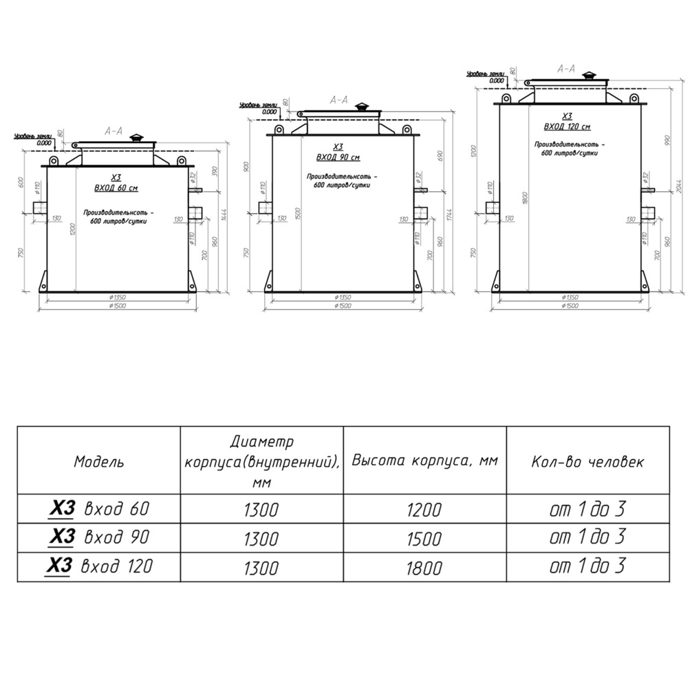 Объем переработки стоков, литров в сутки600
