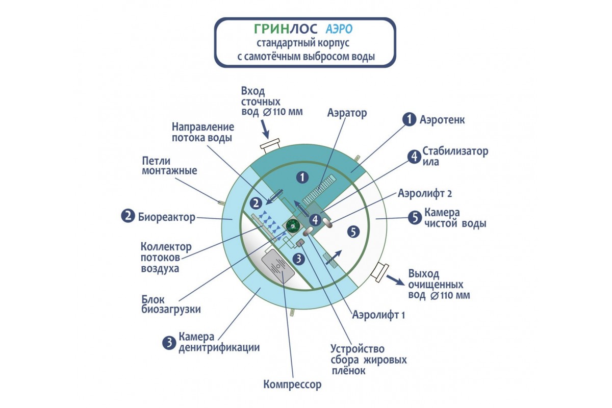 Отличительными особенностями септика ГРИНЛОС Аэро являются: