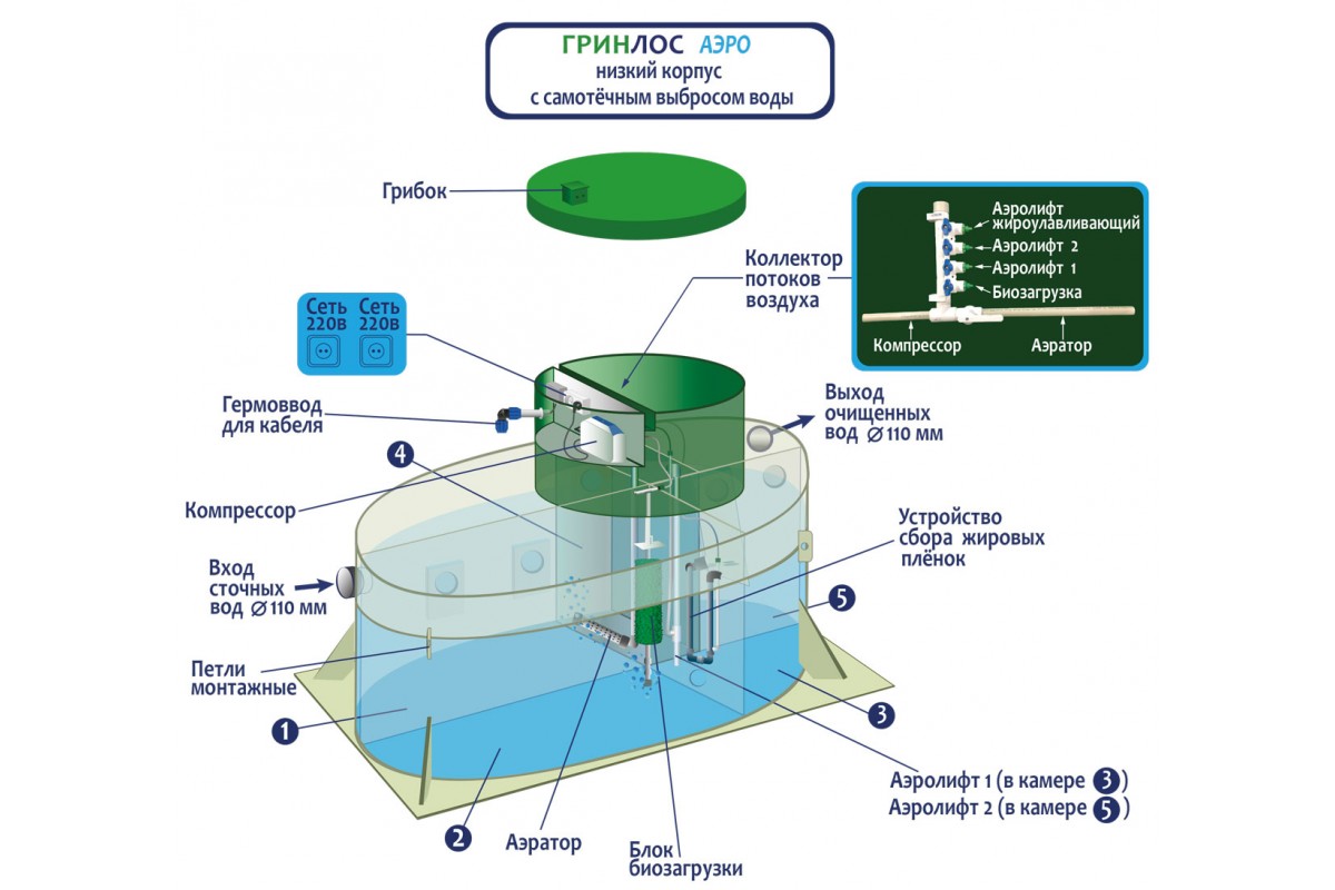Отличительными особенностями септика ГРИНЛОС Аэро являются: