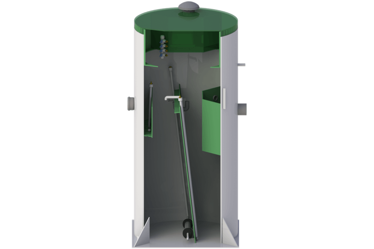 Данная модель Итал серийно выпускается в одной комплектации, которую можно эксплуатировать как с самоточным, так и с принудительным отводом очищенной воды из станции.
