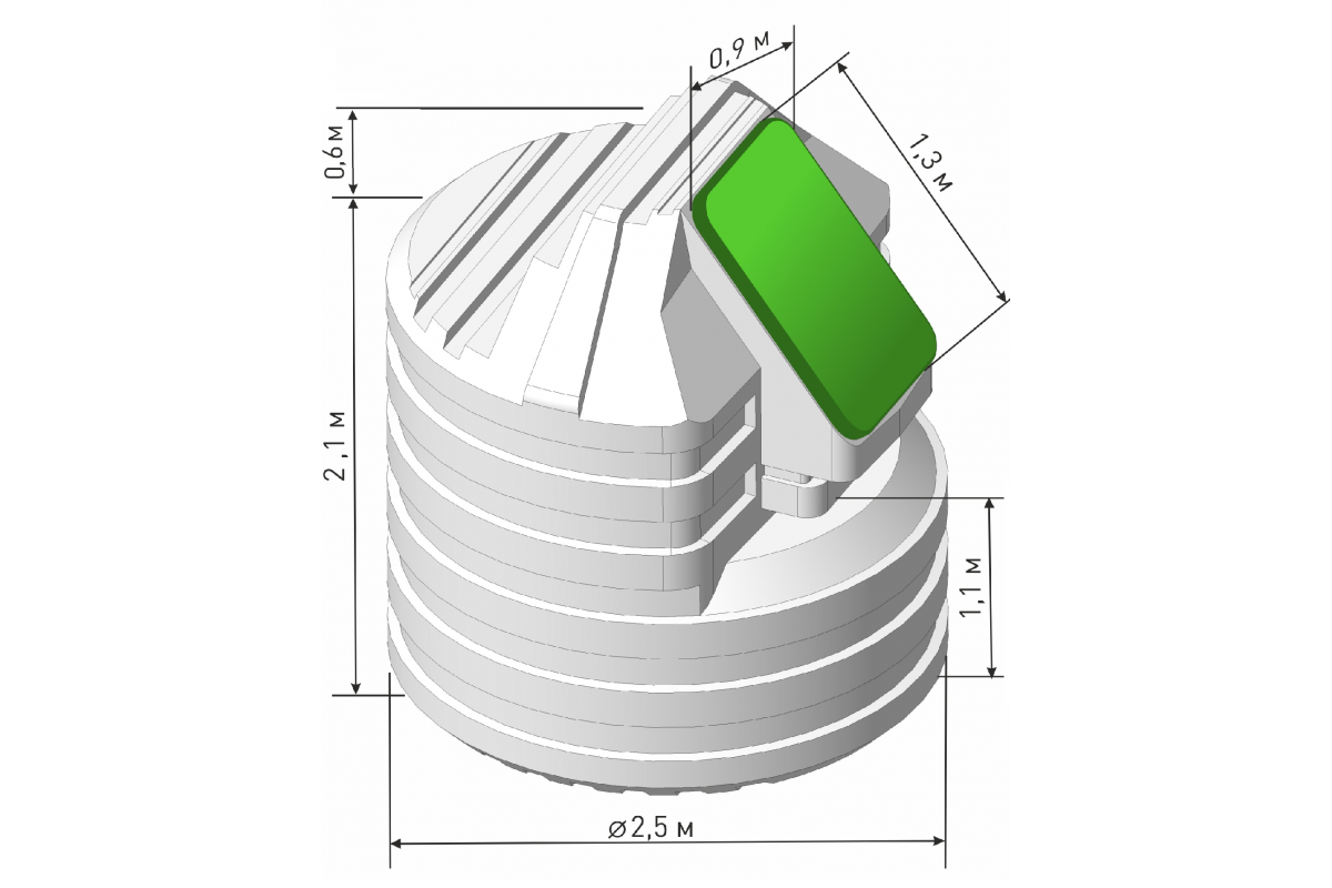 Внутри можно стоять в полный рост — высота всех погребов внутри 2,1м. С горловиной полная высота погребов составляет 2,6м. При таком заглублении создается оптимальная температура для хранения яблок, картофеля, и остального урожая. Предусмотрена вентиляция для поддержания необходимой влажности. Так же в комплект входит переносной светодиодный светильник с аккумулятором. Очень удобно освещать верхние и нижние полки.