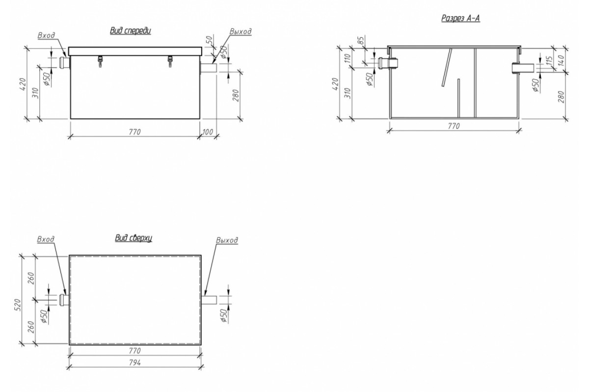 - Компактность и простота жироуловителя снижает расходы на установку и монтаж.