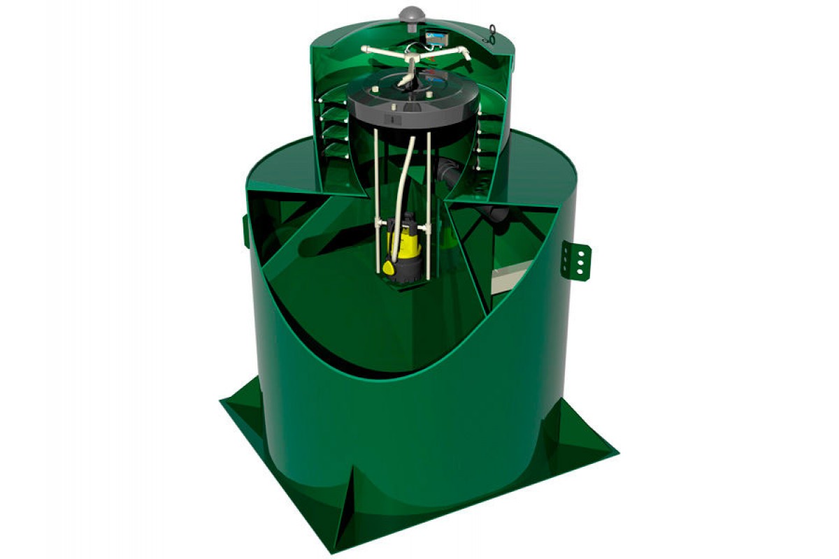 Цилиндрический корпус устанавливается в колодец септик из стандартных бетонных колец.