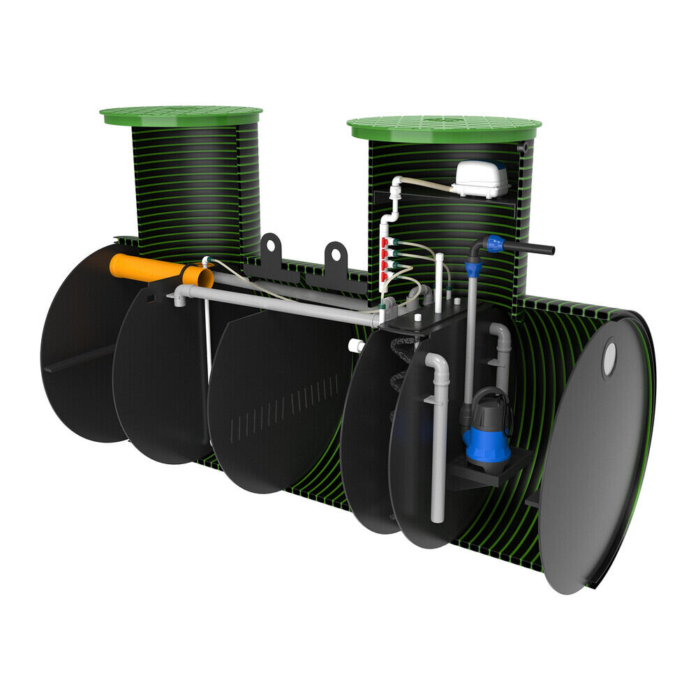 Как и 95% всех станций очистки хоз. бытовых стоков, которые есть на рынке СНГ, принцип работы данного септика основан на мелко-пузырчатой аэрации, которую создает аэратор (компрессор, воздуходувка) поставляемый в комплекте станции. Поэтому, все септики, которые работают по данному принципу являются энергозависимые. За счет подачи воздуха, а так же за счет дополнительных механизмов очистки (аэрлифты, жироуловитель, иловый отстойник, сотовая биозагрузка, ершовая загрузка) происходит полная очистка хоз. бытовых стоков до уровня технической воды. Степень очистки станции при идеальных условиях достигает 98%. Вода на выходе не имеет запахов, абсолютно прозрачна и бесцветна. Такую, экологически чистую техническую воду можно достаточно долгое время дренировать в грунт, а так же использовать в качестве воды для полива, мойки и т.д. Данная станция подходит как для постоянного проживания, так и для сезонного (например, дачного варианта). Вопреки всем мифам, в станцию не нужно добавлять никаких бактерий! Процесс очистки полностью автономный.