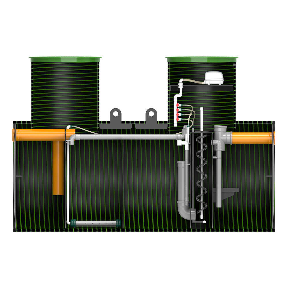 Все станции KANN серии Ultra могут работать в энергонезависимом режиме, без электроэнергии. При отсутствии электричества станция работает в режиме четрых-камерного энергонезависимого септика, степень очистки воды в этом случае составит 70-80%. При включении электричества энергонезависимый септик автоматически перейдет в режим работы станции биологической очистки и очистка будет до 98%.
