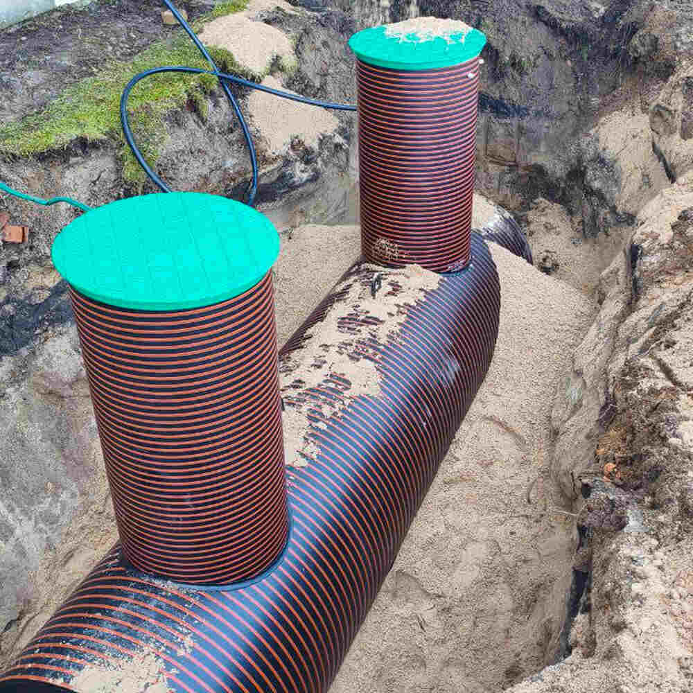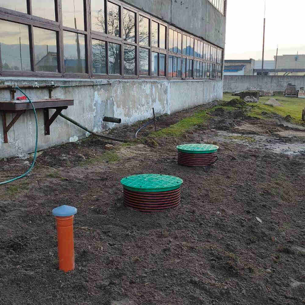 Корпус выполнен из полиэтиленовой спиральновитой трубы, изготовленной по высшим международным стандартам с соответствующими сертификатами качества. Материал корпуса - полиэтилен марки ПЭ100, самый прочный на сегодняшний день из всех ПЭ полимеров. Толщина корпуса составляет 25 мм. Материал станции устойчив к низким и высоким температурам, что позволяет при монтаже станции делать обратную засыпку песком и эксплуатировать в любых климатических условиях. Монтаж становится еще проще и дешевле. Обратная засыпка станции цементно-песчанойесью теперь не нужна!