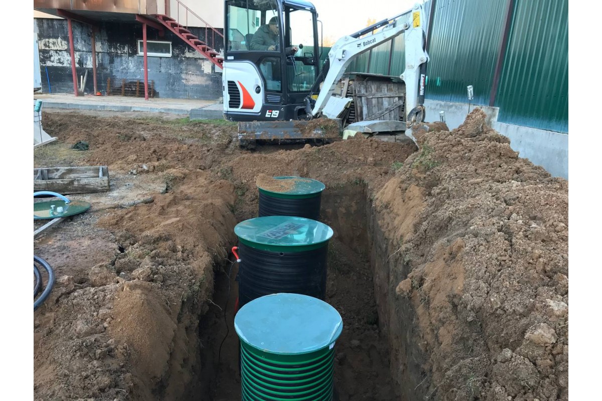 Корпус выполнен из полиэтиленовой спиральновитой трубы, изготовленной по высшим международным стандартам с соответствующими сертификатами качества. Материал корпуса - полиэтилен марки ПЭ100, самый прочный на сегодняшний день из всех ПЭ полимеров. Толщина корпуса составляет 25 мм. Материал станции устойчив к низким и высоким температурам, что позволяет при монтаже станции делать обратную засыпку песком и эксплуатировать в любых климатических условиях. Монтаж становится еще проще и дешевле. Обратная засыпка станции цементно-песчанойесью теперь не нужна!