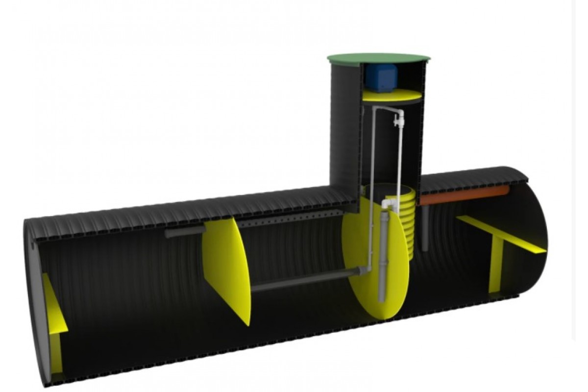 Корпус выполнен из полиэтиленовой спиральновитой трубы, изготовленной по высшим международным стандартам с соответствующими сертификатами качества. Материал корпуса - полиэтилен марки ПЭ100, самый прочный на сегодняшний день из всех ПЭ полимеров. Толщина корпуса составляет 25 мм. Материал станции устойчив к низким и высоким температурам, что позволяет при монтаже станции делать обратную засыпку песком и эксплуатировать в любых климатических условиях. Монтаж становится еще проще и дешевле. Обратная засыпка станции цементно-песчаной смесью теперь не нужна! Монтажная глубина септика в стандартном исполнении 1,5 метра от уровня земли до дна котлована.